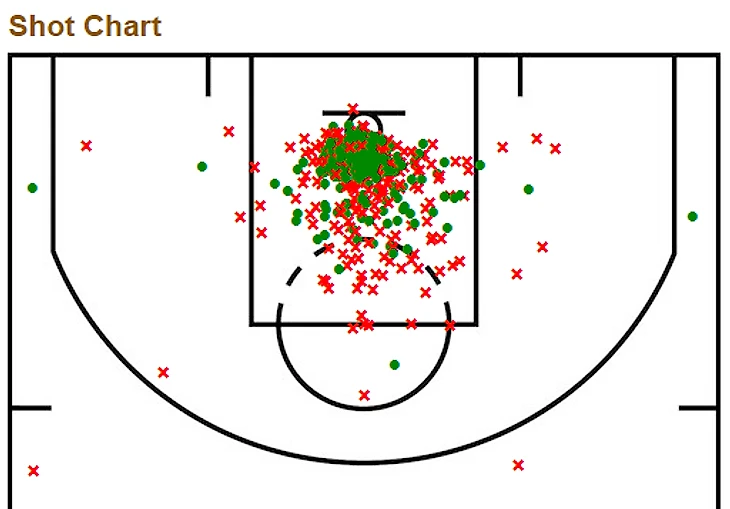 В первом матче этого сезона между данными командами Филадельфия показательно разгромила Оленей, и доказала, что является крайне неудобной командой для них, даже несмотря на очевидные проблемы 76-е можно сказать, что собраны специально под Милуоки, в этом матче в исходы лезть не хочу, а предлагаю заиграть тотал Бени Симмонса, внизу картинка с бросками Бена в этом сезоне, как видим подавляющее число атак из краски, а Милуоки традиционно делает упор на оборону этой зоны, и если против Эмбиида большим Бакс проблематично защищаться, то Симмонса отлично ограничивают, против Милуоки он традиционно набирает мало очков