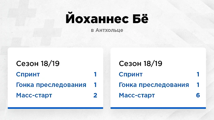 У мужчин, в первую очередь, естественно выделяется Йоханнес Бё. В прошлом сезоне он во всех трех гонках показал лучший ход, выиграл и спринт, и преследование, в масс-старте стал вторым. В сезоне 17/18 он также в комбинации спринт-пасьют взял два золота.