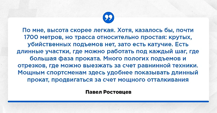 Ну а на счет габаритов и стереотипа о том, что мощным спортсменам в горах тяжелее. Во-первых, опять же, должна быть грамотная подводка к ЧМ, есть время для адаптации. Во-вторых, особенность самой трассы. Рельеф отлично подходит габаритным спортсменам, на эту тему можно вспомнить слова трехкратного чемпиона мира Павла Ростовцева, там есть ряд интересных тезисов:
