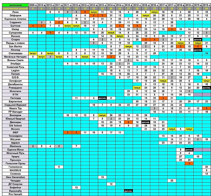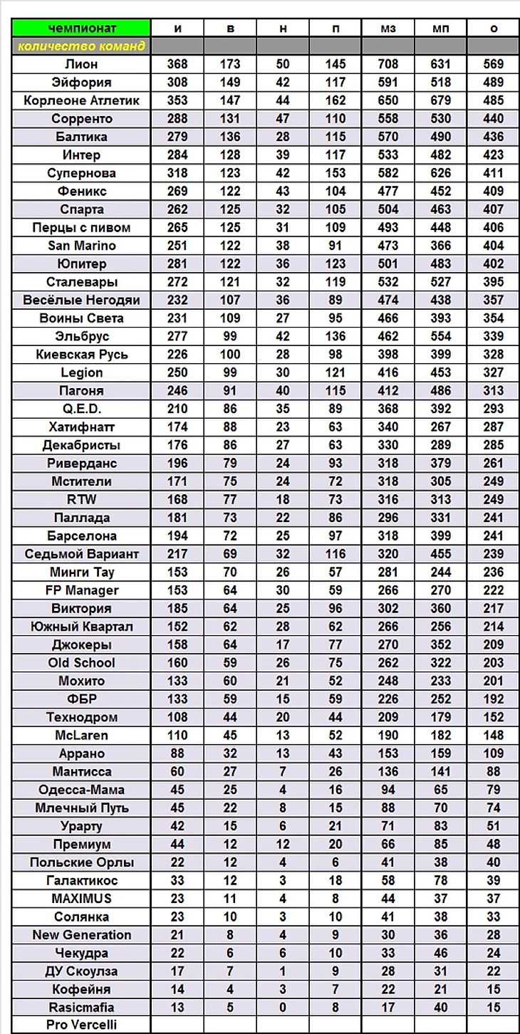Накануне старта первенства представляю данные по всем проведённым чемпионатам на рублогах/спортсе (без вырезок по отдельным командам):