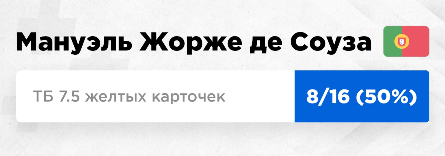 Вышеупомянутый Мануэль Жорже де Соуза пробивал этот тотал в 10 из 16 матчей. Посмотрим, кто еще близок к нему.
