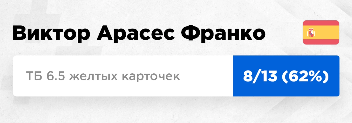 UPD. Вчера к статистике арбитра добавился еще один матч, где он снова пробил 6.5 желтых, а также показал красную карточку.