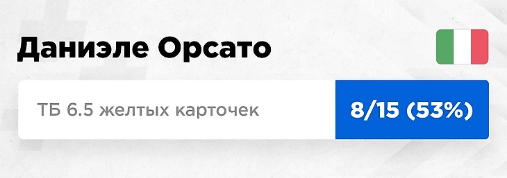 Закончим единственным представителем топ-чемпионатов в нашей подборке. В Италии сейчас такими цифрами мало кого удивишь, там какой-то совсем нетипичный сезон получается. Чтобы вы понимали, в прошлом сезоне ни у одного из арбитров не было хотя бы 6 ЖК в среднем за матч. В этом сезоне таких аж семь. Орсато – один из них, и именно он чаще остальных пробивал тотал 6.5 ЖК, если учитывать кубки. Кстати, запомните его в преддверии ЛЧ. В этом сезоне он судил там 5 матчей и показывал в среднем 6.8 желтых за игру. Это самый высокий показатель среди тех, у кого было от трех матчей в турнире.
