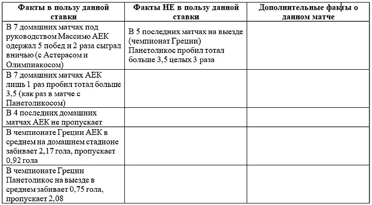 Предлагаемая к рассмотрению ставка: победа АЕК и тотал матча меньше 3,5