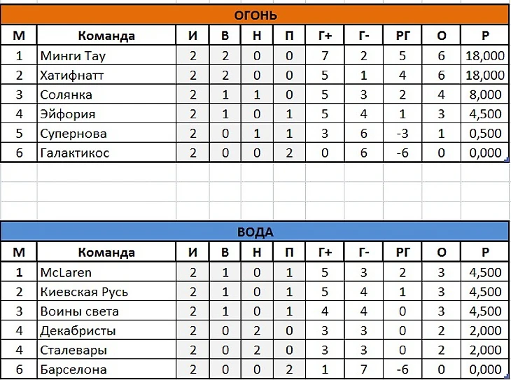 Текущий вариант таблиц - пока ещё промежуточный и по функционалу и по дизайну. Мы планируем сделать их чуть покрасивше и добавить приятный фон по каждой группе, ассоциируя названия стихий с таблицами. Поэтому первые 3 команды и прочие фишки пока не работают.