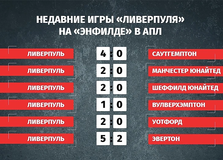 Мерсисайдцы в чемпионате потеряли всего два очка за двадцать шесть туров – феноменальные показатели. Но в ЛЧ были в очередной раз обыграны, да, на выезде, всего 0:1, однако приятного в этом мало, особенно, когда привык только выигрывать. До золотых медалей АПЛ им осталось всего пять побед, поэтому на «Энфилде» против «мертвого» «Вест Хэма» нет никаких сомнений, что красные добьются желаемого результата. В первом круге в Лондоне «Ливерпуль» довольно легко одолел «молотков» (2:0). Были моменты у лондонской команды, но красные играли с огромным запасом и преимуществом.