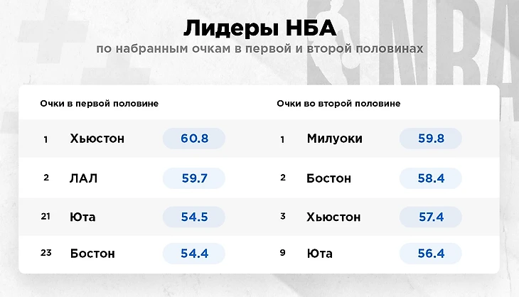 В последних трех матчах "Бостон" и вовсе набирает в среднем 62 очка после перерыва, показатель "Юты" — 50,3. Может быть "Селтикс" и не явные фавориты матча, но вторая половина должна быть за ними.