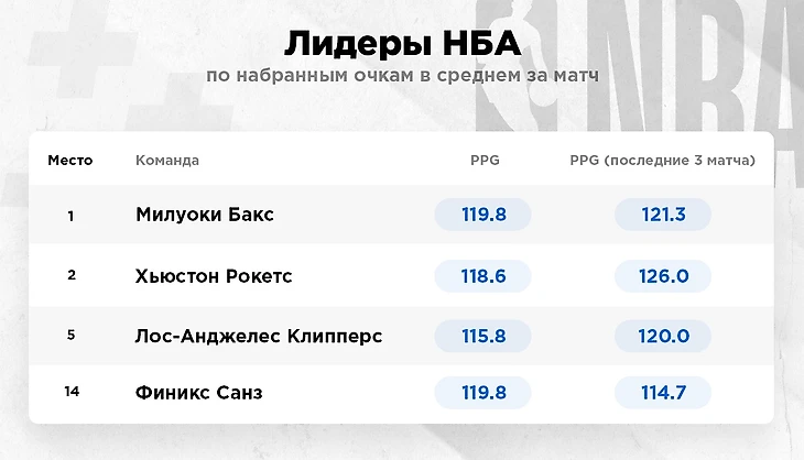 "Клипперс" занимают 3-е место в Западной конференции, лишь немного уступая "Денверу". Главная сила "Клипперс" — мощная атака. В среднем "Лос-Анджелес" набирает 115,8 очков за матч (пятый показатель в НБА), а в последних трех матчах и вовсе 120 очков. Кавай Ленард, Пол Джордж, Лу Уильямс, Монтрез Харрелл — все они набирают около 20 очков в среднем за игру.