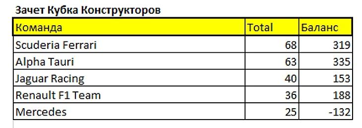 Феррари за счет двух крутых финишей сумела выйти на первую строчку протокола команд, вторым идут Альфа Таури за счет лучшей надежности. Двойка команд оторвалась уже на 23 очка от ближайших конкурентов, смогут ли остальные догнать?