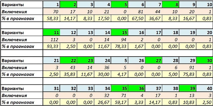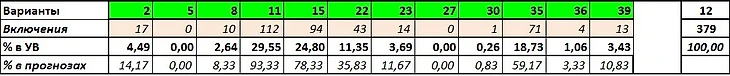 Сыграно вариантов: 12 (2-5-8-11-15-22-23-27-30-35-36-39)