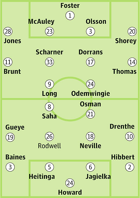 У "Эвертона" травмированы Джеймс Макфадден и Виктор Аничебе, а так же трио полузащитников - Маруан Феллайни, Шеймус Коулмэн и Джек Родуэлл. Однако, есть небольшая вероятность того, что последнего мы сможем увидеть сегодня на поле. Газета The Guardian тоже так считает. Лэндон Донован не сможет выйти на поле с "Вест Бромвичем", потому что трансферное окно было открыто после того, как команда подала заявку на матч 19 тура АПЛ.