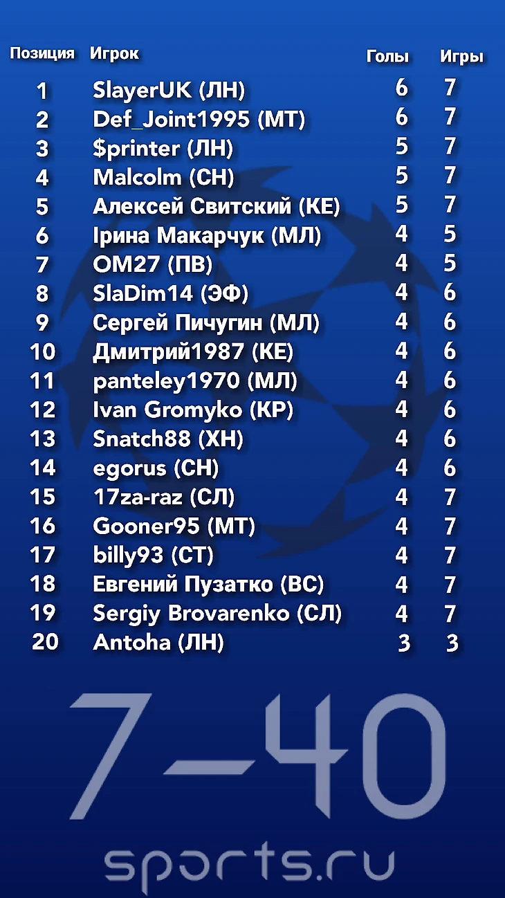 Список бомбардиров представлен Дмитрием Юдаловичем, нарисовавшим для вас красивую таблицу (он старался!).
