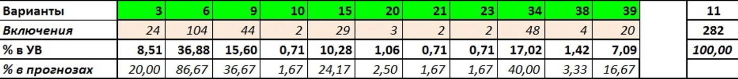 Сыграно вариантов: 11 (3-6-9-10-15-20-21-23-34-38-39)