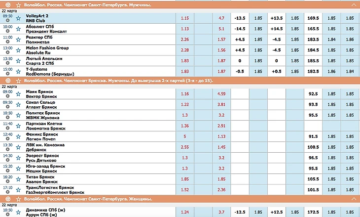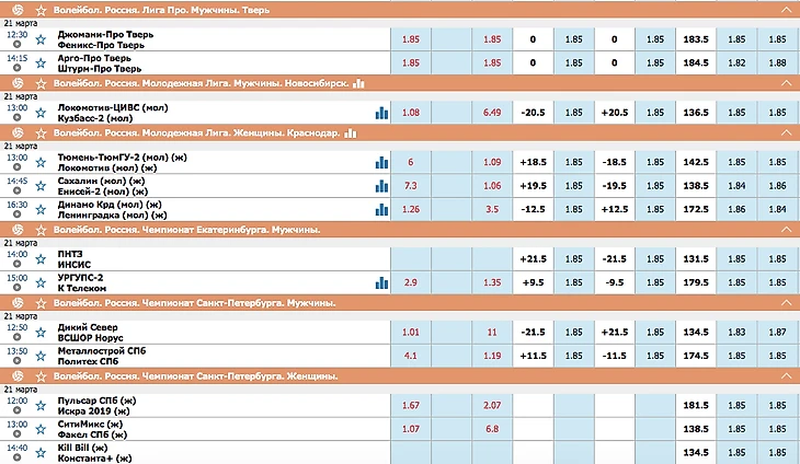 11:00 В Волейболе сейчас можно поставить на чемпионат Екатеринбурга и Санкт-Петербурга. Невеселые времена для беттинга, скажу я вам.
