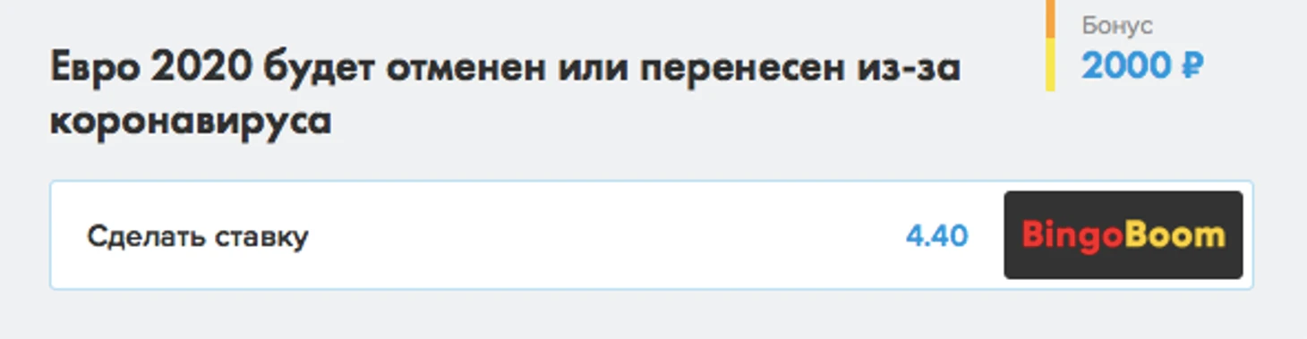 20:50 У BingoBoom уже обновлена не только на отмену или перенос Евро-2020, есть новая линия и по Олимпиаде.