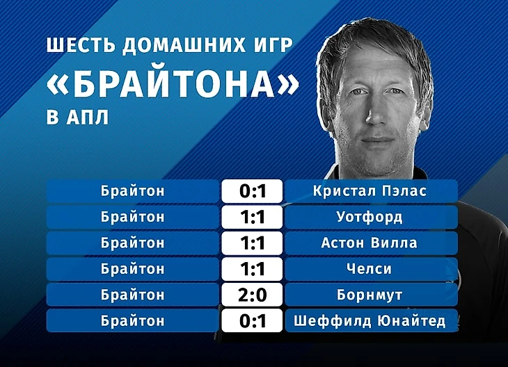 «Брайтон» в очень непонятном состоянии: последняя победа датирована 28 декабря, но с того момента прошло девять туров, а проиграли подопечные Поттера всего трижды, ещё шесть раз были зафиксированы ничьи. Четыре встречи прошли по тоталу меньше (восемь из десяти последних). Если брать только домашние матчи, то статистику вы можете посмотреть ниже.
