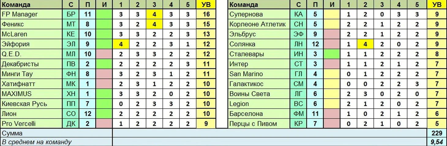 Лучшая команда тура по сумме УВ в целом: FP Manager – 16 вариантов