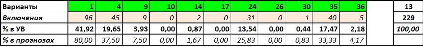 Сумма угаданных вариантов: 229 из 840 (27,26%)
