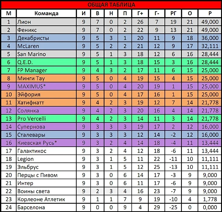 «Прямо сейчас» в плей-офф проходит Киевская Русь, занимающая 16-е место. Галактикос, уступающий Русичам по разнице голов, снова оказывается на первой непроходной позиции.