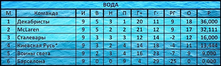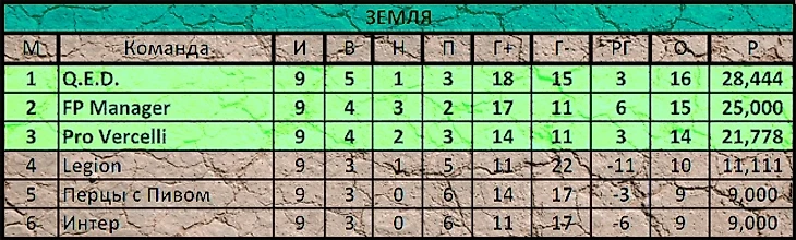 Ещё более явным стало превосходство команд Воды над Землёй. Декабристы, Сталевары, Киевская Русь и McLaren от Воды и FP Manager от Земли сформировали общий счёт. 4:1, Вода громит Землю.