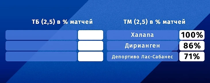 Футболисты из города Халапа на этом не успокоились и дали нам еще одну тенденцию – 70% голов в матчах с участием местной команды пришлись на второй тайм.