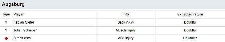 Плюс, кадровая ситуация «Аугсбурга» выглядит несколько предпочтительнее, чем у «волков». Созерцаем, братья! 👇