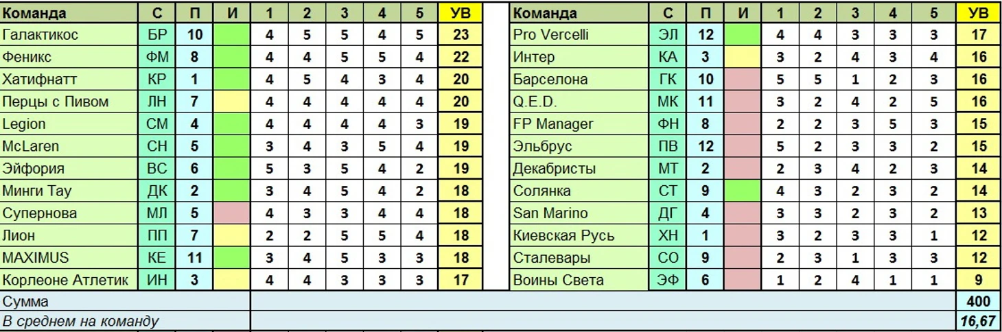 Лучшая команда тура по сумме УВ в целом: Галактикос – 23 варианта