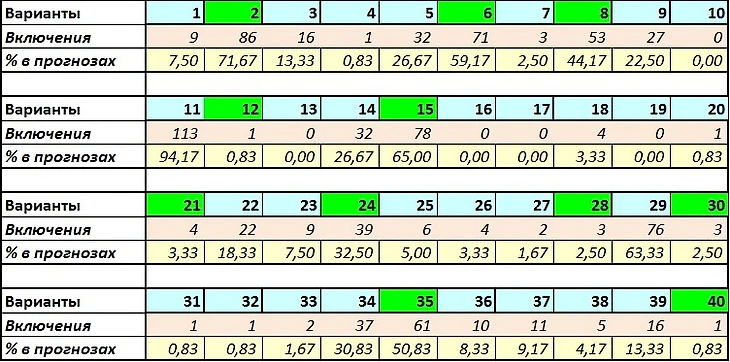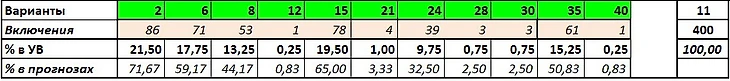 Сумма угаданных вариантов: 400 из 840 (47,62%)