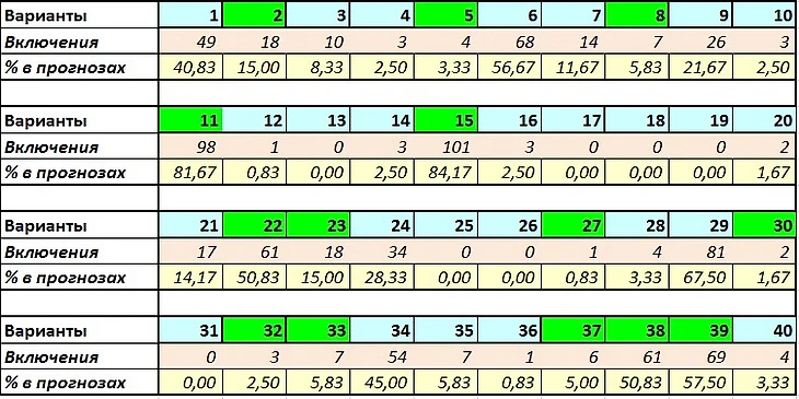 Сумма угаданных вариантов: 456 из 840 (53,93%)