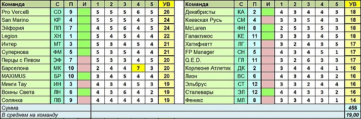 Вот и получилось в итоге, что действующие чемпион и бронзовый призёр проиграли финалисту Кубка Ямато Легиону и победителю Суперлиги Интеру, а в поединке андердогов Pro Vercelli учинили разгром своим соперникам. Огонь сумел восстановить потери за счёт успехов Галактикос, Суперновы и Эйфории. В итоге 3:3.