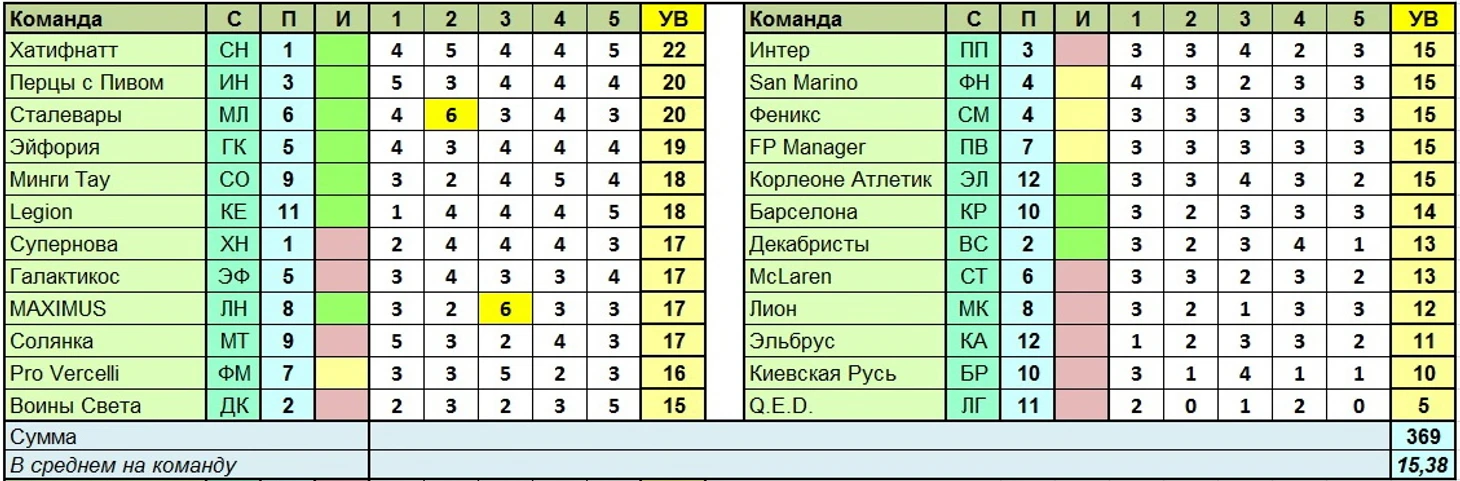 Лучшая команда тура по сумме УВ в целом: Хатифнатт – 22 варианта
