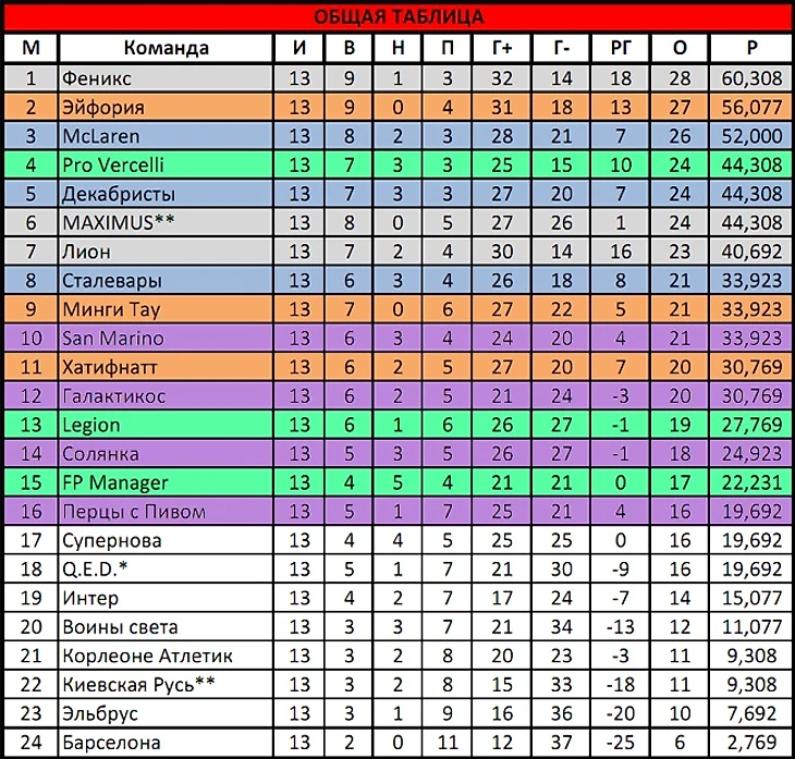 А сейчас обратимся к итогам прошедшего 13-го тура.