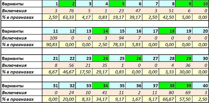 Сумма угаданных вариантов: 369 из 840 (43,93%)