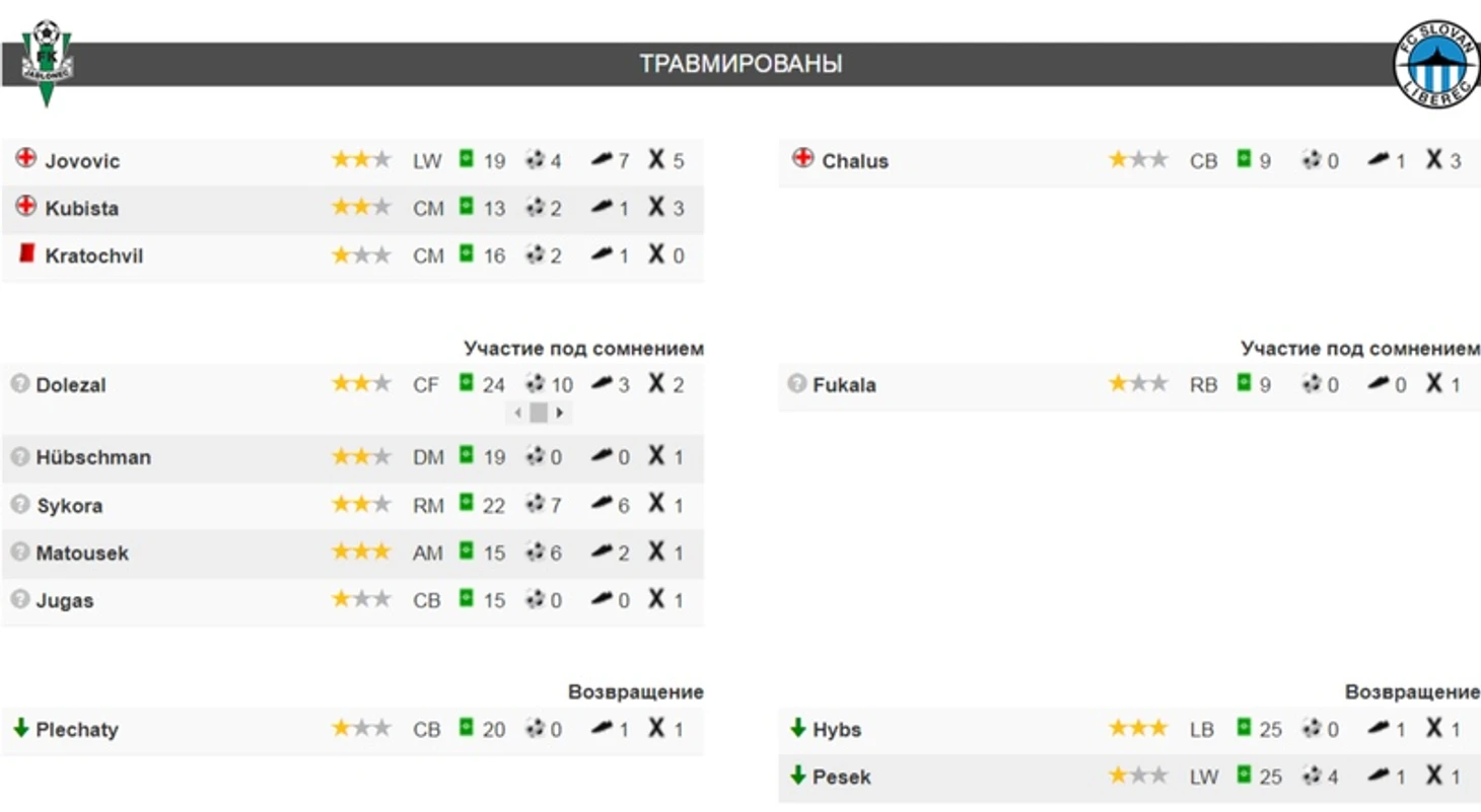 «Слован» тоже стартовал неудачно, проиграв «Теплице» (2-0). Но следующие 2 матча выиграл с общем счётом 1-4, и сегодня наконец будет в боевом составе!