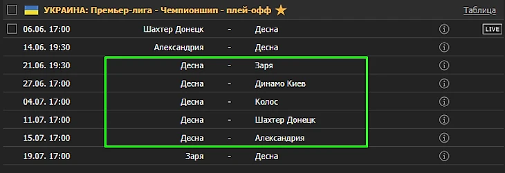 А вот еще одна причина почему Десне это нужно, у них в дальнейшем 5 подряд домашних игр, где они будут принимать немотивированный уже Шахтер, который на тот момент уже будет официально чемпионом, а так же Зарю и Динамо, у последних календарь сложнее, и поэтому шанс Десны оторваться находится у них перед руками, нужно всего лишь дать бой Шахтеру. Но, если не дадут, я жду от матча максимум 2 голов, но никак не 4.