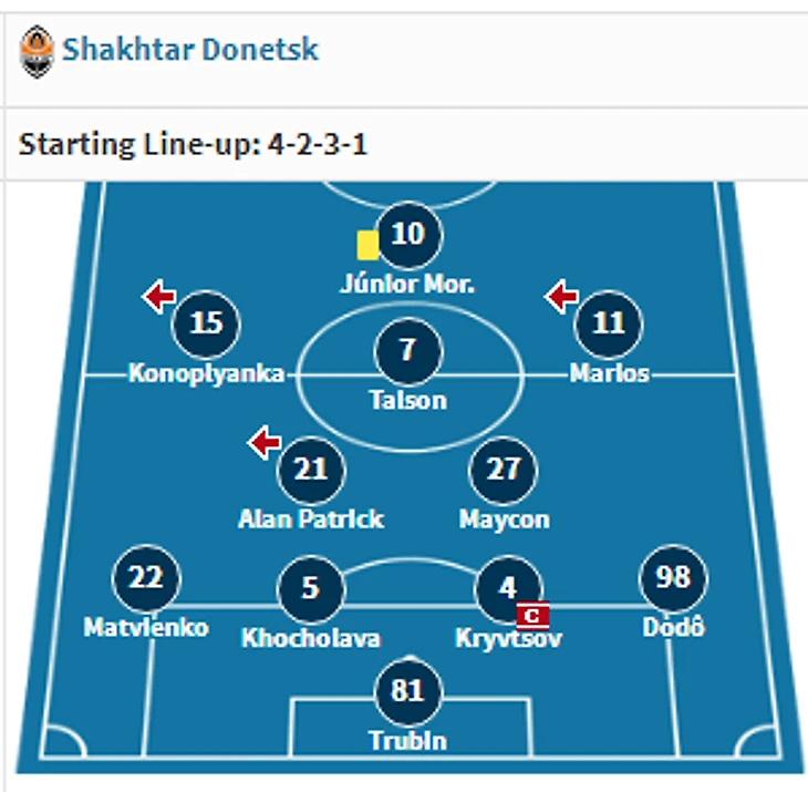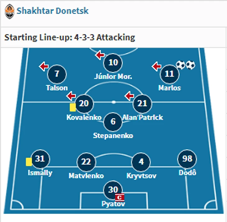 О схеме игры Шахтера и говорить не о чем, здесь все предельно ясно. Это разновидность 4-3-3, которая трансформируется либо эту схему.