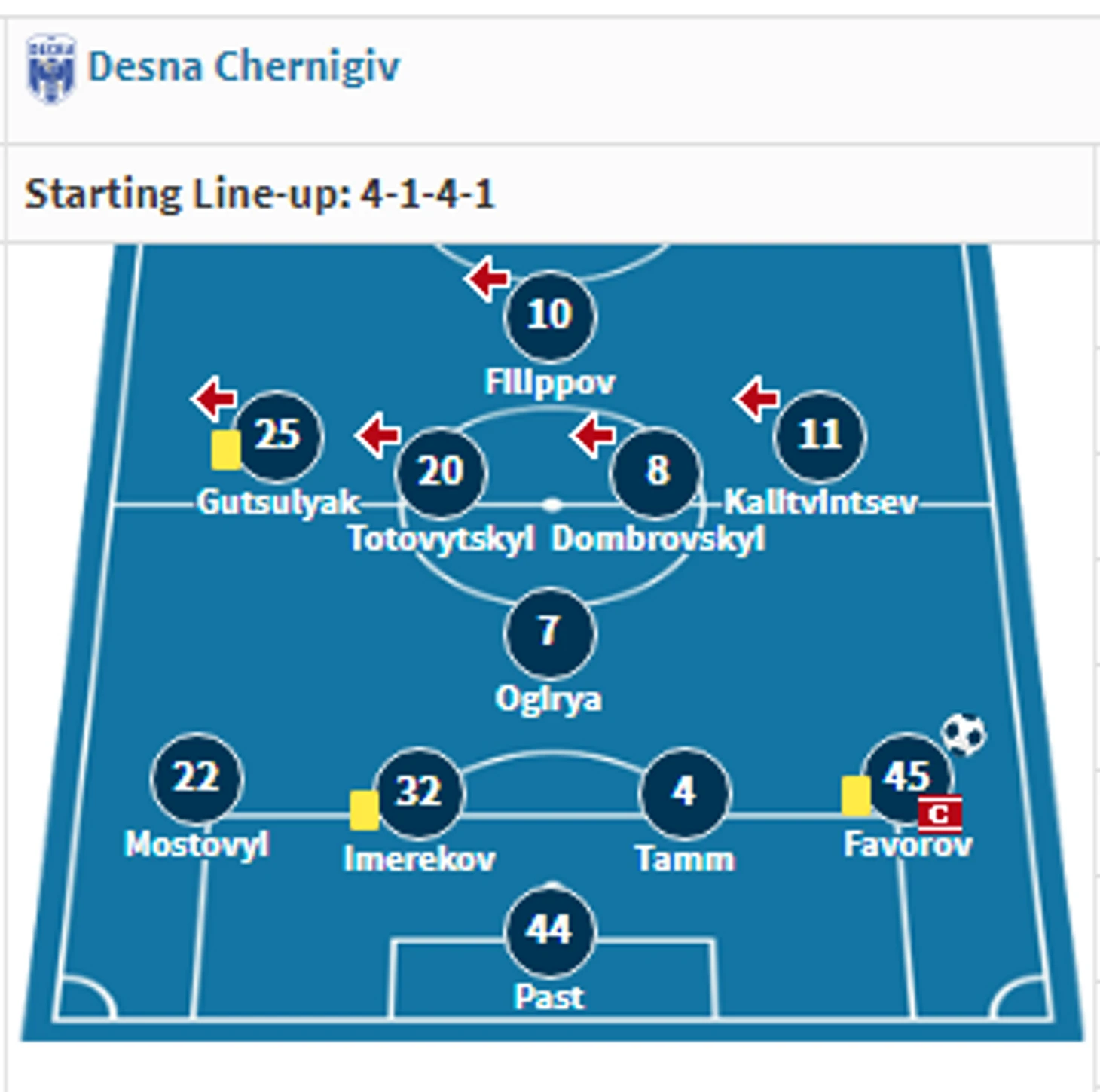 На скринах это показано, номинальные фланговые полузащитники опускают вниз, и играют на небольшом расстоянии друг от друга, не давая игрокам Шахтера пространства. Вот и получается что Шахтер все свои моменты создает посредством прорыва через фланги, либо после ошибок игроков Десны в центре поля. но Дамбровский и Огиря хорошо выглядят по сезону, иначе не было бы всего 0.66 пропущенных мяча за игру.