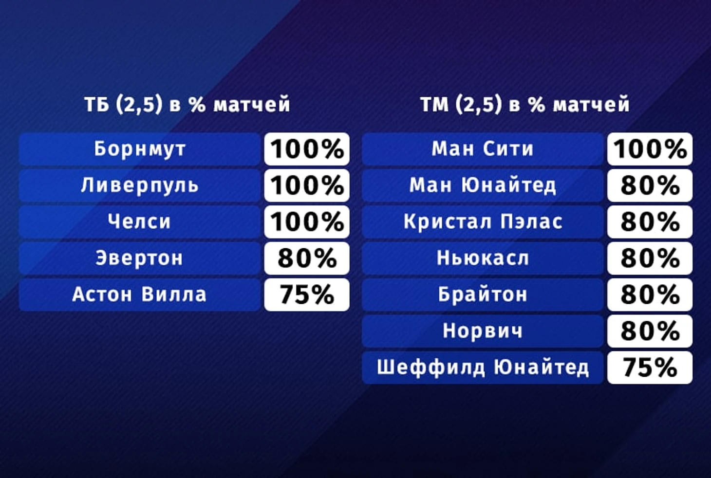 Здесь особого преимущества и тренда нет, как за декабрь-январь. Можно сказать, что АПЛ не опускается ниже определенной планки по результативности, есть некоторые тенденции, а если мы возьмем отдельные команды, то сильно удивимся. Почему? Давайте смотреть!