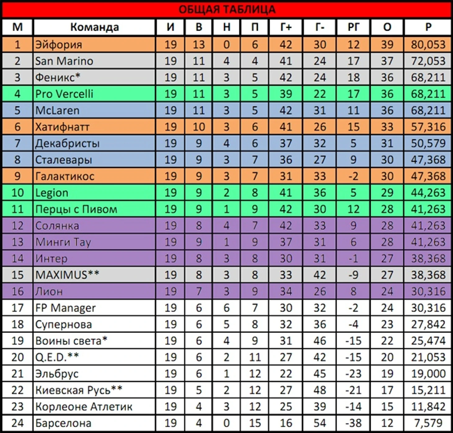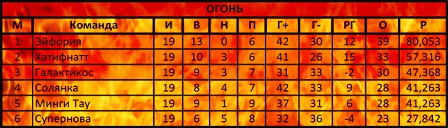 Который после двух сухих поражений подряд сумел забить и набрать 3 очка. Эйфория продолжает единолично лидировать в общей таблице уже 6 туров подряд.