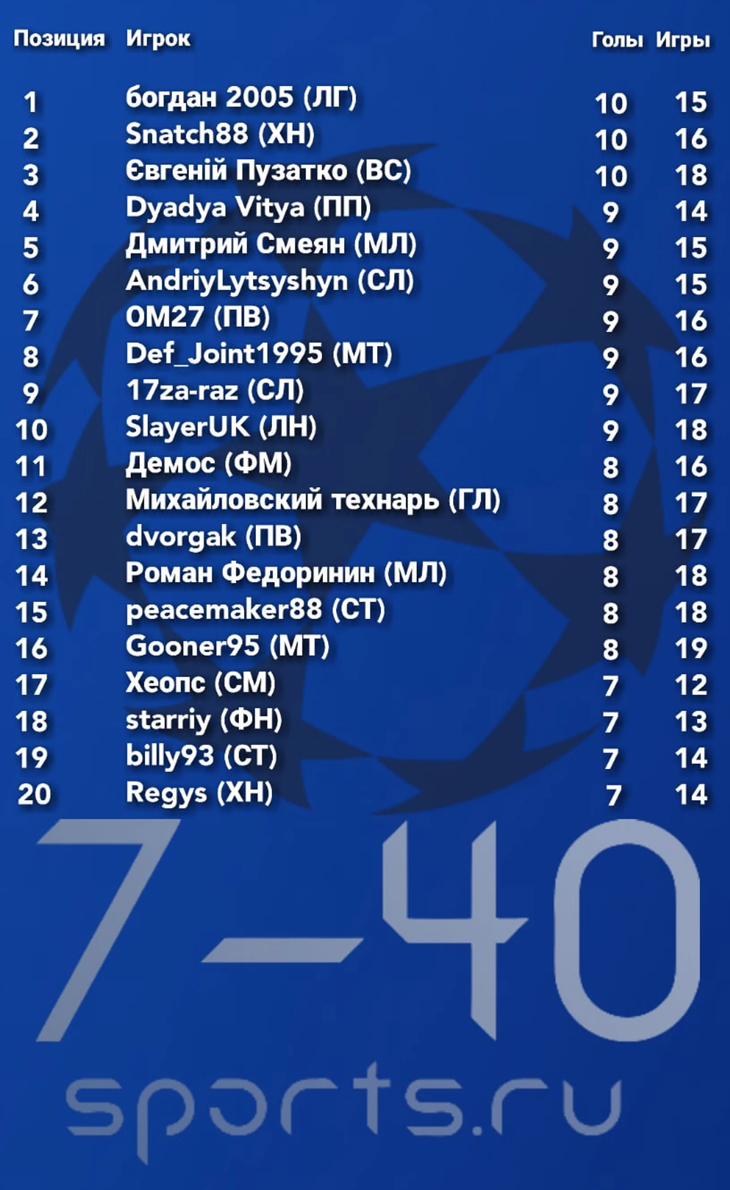 Игрок Сталеваров peacemaker88, нсмотря на проигрыш своей команды, продолжает свою личную беспроигрышную серию, длящуюся уже 10 матчей, в которой он забил 7 голов.