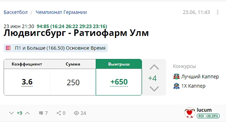 Прогнозы от капперов с РОИ +10%, день 27