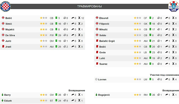 Некоторые проблемы с кадрами есть и у «Хайдука», но они вообще не сравнимы с заявкой гостей! «Славену» не помогут семь игроков основного состава!