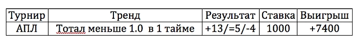 Как видно из таблички, в 22 играх – 13 проходов, в 5 случаях был расход и лишь 4 раза ставка проиграла. Учитывая высокий средний коэффициент на эту ставку – 1.89 получается весьма профитная история. Прямо сейчас это 7400 рублей чистой прибыли, при ставке флетом в 1000 рублей, что составляет 33.64% профита. Уже сегодня начинается новый тур, который растянется на 6 дней, ближайшая игра «Астон Виллы» против «Вулверхэмптона».
