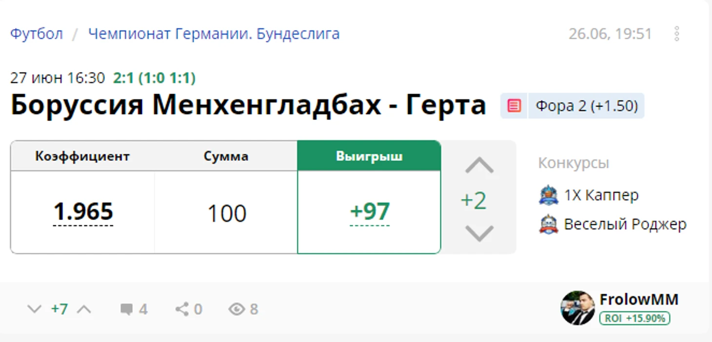 Прогнозы от капперов с РОИ от +10%, день 29 (итоги)