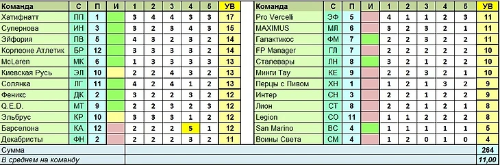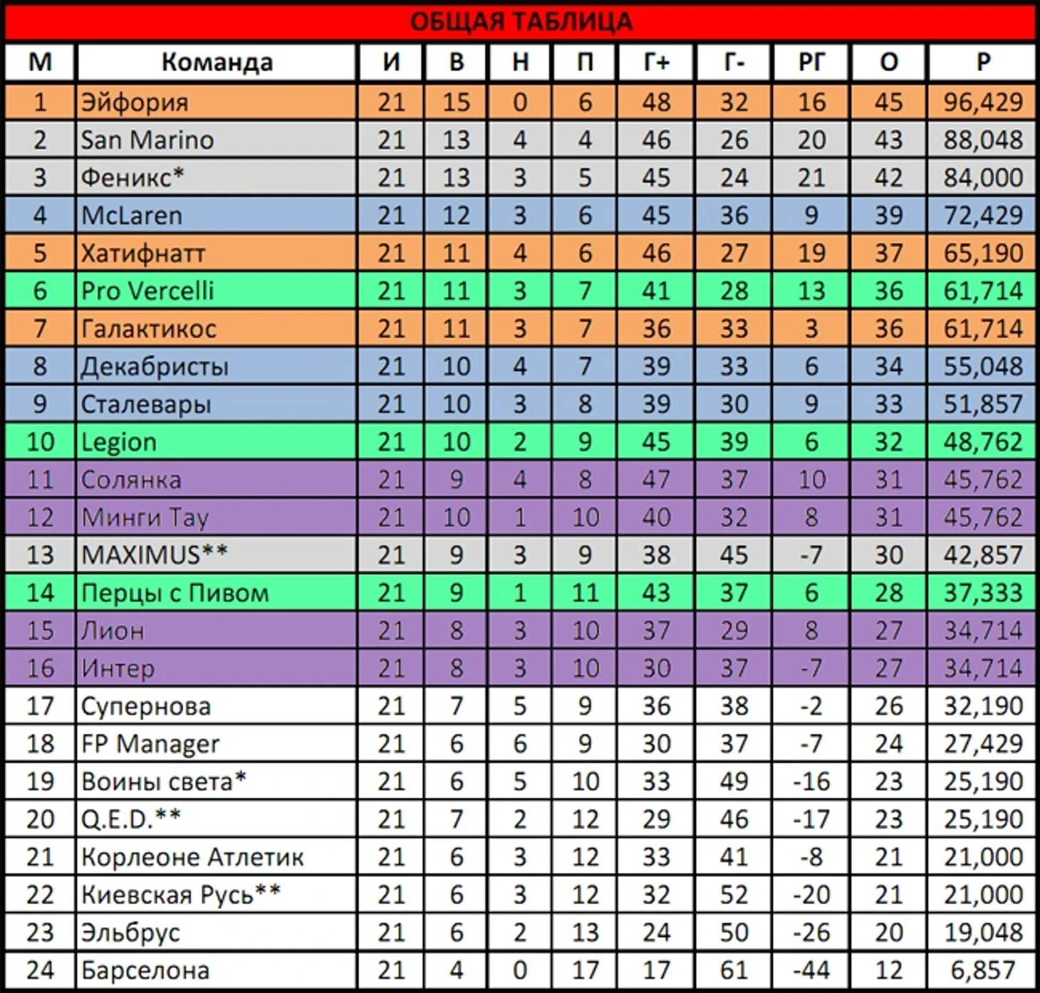 Взглянув на таблицу УВ, я был удивлён. Думал, что остальные команды в среднем набрали побольше. Спасибо Перцам и Дяде Вите, удачи в концовке регулярки.