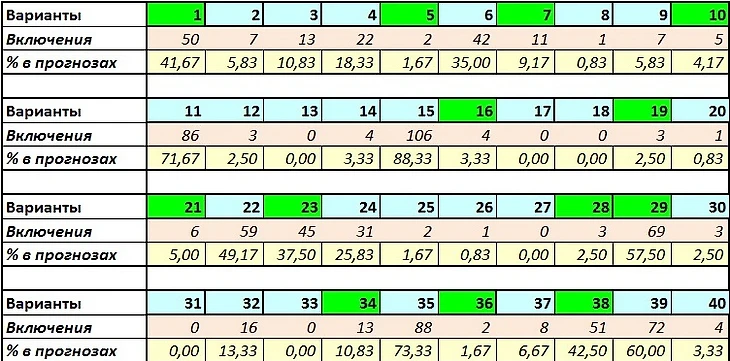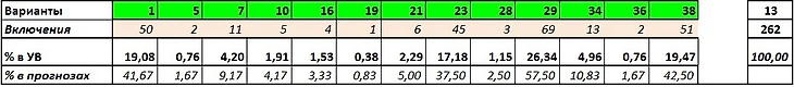 Сумма угаданных вариантов: 262 из 840 (31,19%)