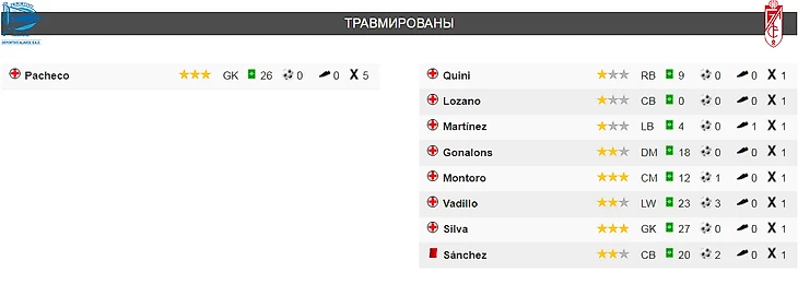 Инсайд дня. Сегодня «Гранаде» играть без 5-ти основных игроков!