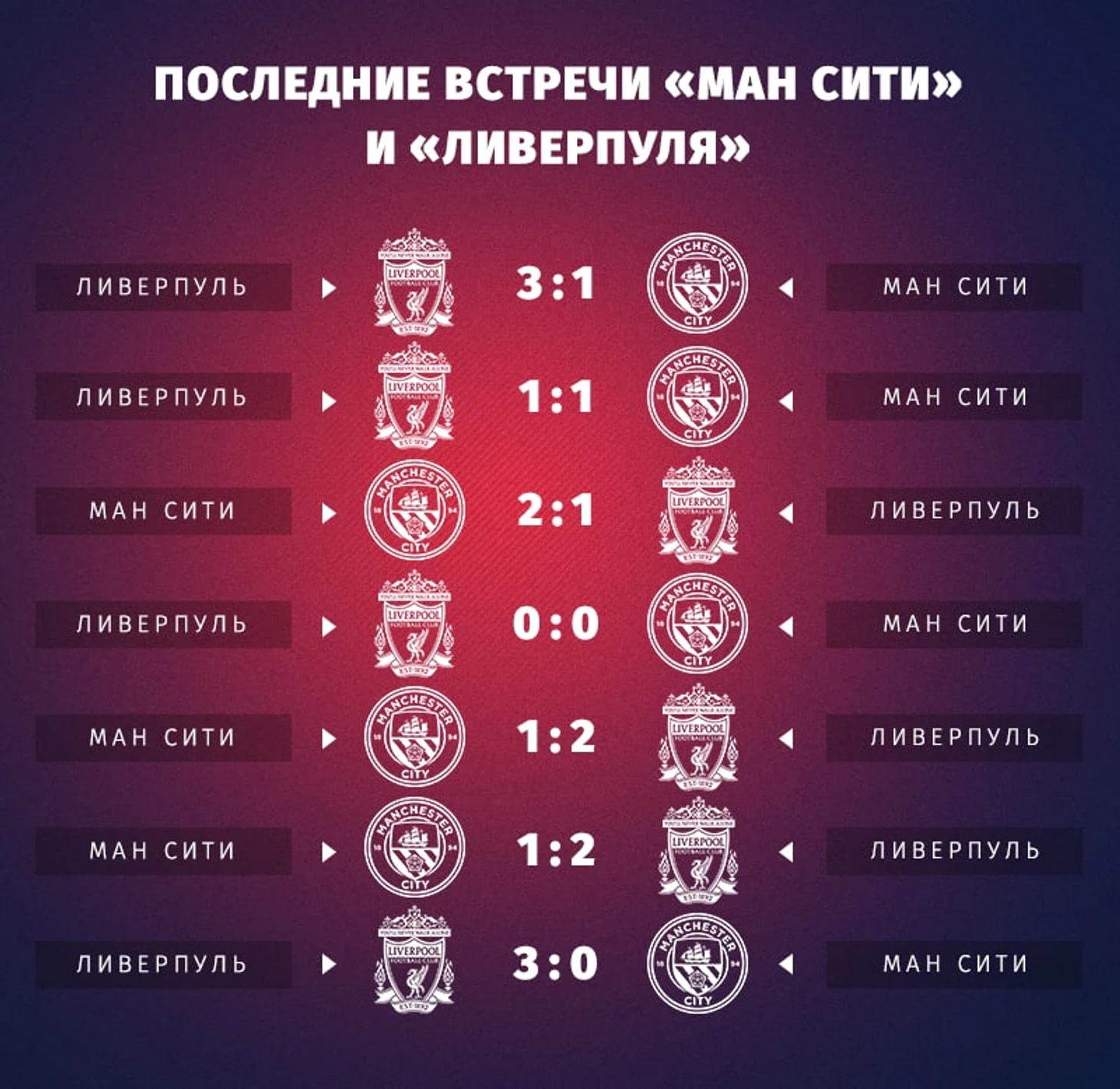 Четыре победы мерсисайдцев (две на стадионе «Ман Сити») против одной у «горожан».