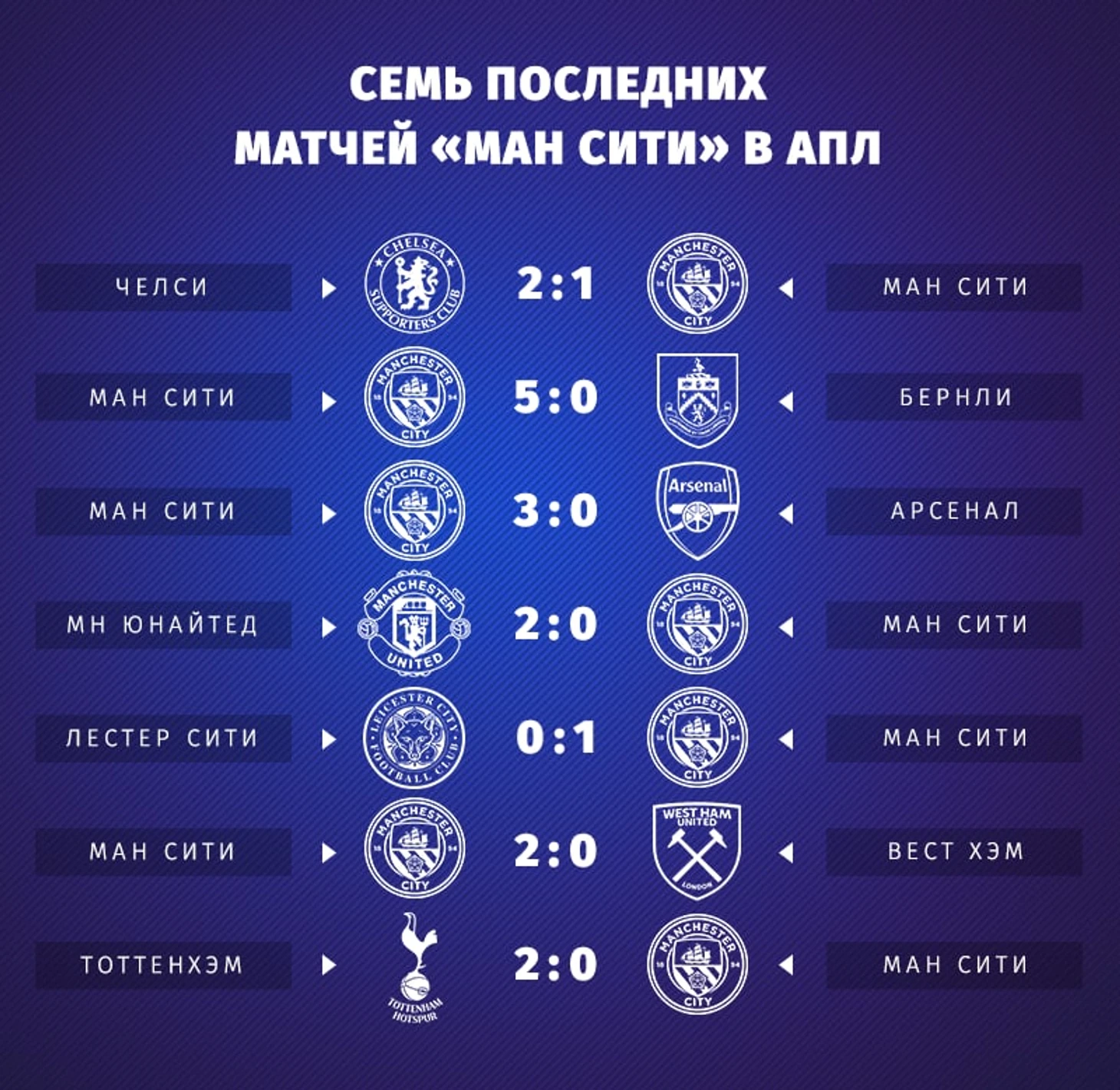 Давайте взглянем на последние матчи «Сити» в рамках Английской Премьер-Лиги: