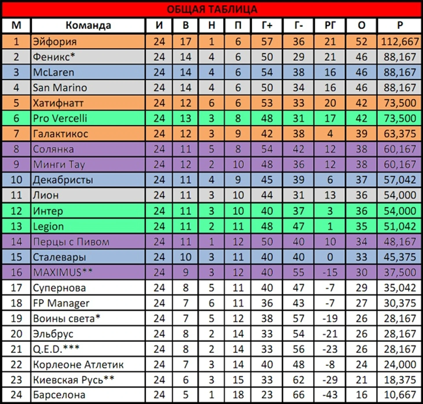 В таблице наконец-то закрыты последние остававшиеся нули - в графе "ничьи" у лидера и аутсайдера. Эйфория с первого места, а Барселона с последнего синхронно выстрелили в эту часть таблицы, сыграв свои матчи вничью: соответственно с McLaren и Солянкой.
